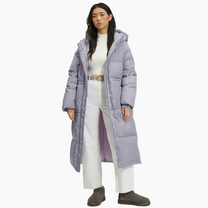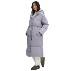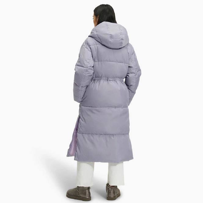 Diese warme und stylische Jacke stammt aus der Keeley-Kollektion der Marke UGG. Diese lange Daunenjacke mit Kapuze besteht aus 100 % Polyester und ist vollständig wasserabweisend. Das Futter besteht ebenfalls aus Polyester und die Jacke ist mit warmer recycelter Synthetikdaune gefüllt. Die feine Kapuze ist mit weichem Lammfellimitat gefüttert und die Jacke hat an den Seitennähten einen Druckknopfverschluss für mehr Spielraum, der das An- und Ausziehen erleichtert. Der Reißverschluss der Jacke ist durchgehend und zusätzlich mit einem extra Druckknopfverschluss für noch bessere Isolierung ausgestattet. Außerdem hat die Jacke Leistentaschen, die mit handwärmendem Fleece gefüttert sind, und eine innenliegende Brusttasche mit Druckknopf. Am Bund an der Innenseite der Jacke wurde eine elastische Kordel angebracht, um den Bund zu straffen. Die Daumenlöcher sind mit gerippten Sturmbündchen versehen.
