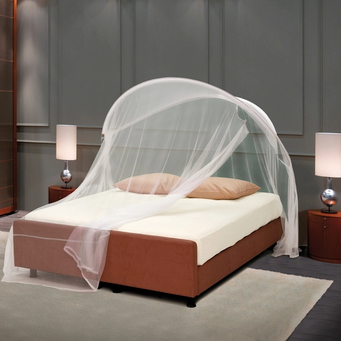 Dieses schöne und praktische Dbug 1- und 2-Personen Moskitonetz kann im Handumdrehen aufgebaut werden. Dieses Moskitonetz wird ohne einen Aufhängepunkt befestigt werden und wird durch die einzigartige Bogenstruktur um das Bett platziert. Dieses Moskitonetz ist für Betten bis zu einer Breite von 220 cm geeignet und hat einen großen Eingang. Die Standfüße des Moskitonetzes werden unter den Standfüßen des Bettes platziert und so bleibt das Netz immer stabil stehen. Dieses Moskitonetz ist einfach auf- und abzubauen und kann sowohl Zuhause als auch im Urlaub bestens genutzt werden. Darüber hinaus wird das Moskitonetz jetzt auch mit Heringen und einer Außentasche geliefert, sodass der Dbug im Freien sehr einfach zu handhaben ist. Bitte beachten Sie: Wenn Sie das Moskitonetz für ein Einzelbett verwenden möchten, muss es eine Vierteldrehung gedreht werden. Dies führt dazu, dass das Netz schief steht.