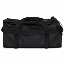 Die Reisetasche Rains Unisex Duffel Bag Small Black ist das perfekte Accessoire für Reisen und Wochenendausflüge. Die Tasche aus 100% Polyester ist robust und wasserabweisend, um Ihre Sachen bei jedem Wetter zu schützen. Mit einem Fassungsvermögen von 34L bietet die Tasche ausreichend Platz für Ihre Kleidung und Reiseutensilien. Die U-förmige Klappe mit Reißverschluss ermöglicht einen einfachen Zugang zum Hauptfach, während das seitliche Reißverschlussfach und das interne Netzfach zusätzliche Organisationsoptionen bieten. Die Tasche verfügt auch über zwei Mesh-Taschen mit Reißverschluss unter der Klappe, eine verstärkte Basis und Kompressionsbänder an den Seiten. Mit gepolsterten verstellbaren Schultergurten und gepolsterten Griffen ist diese Tasche für Damen und Herren gleichermaßen geeignet.