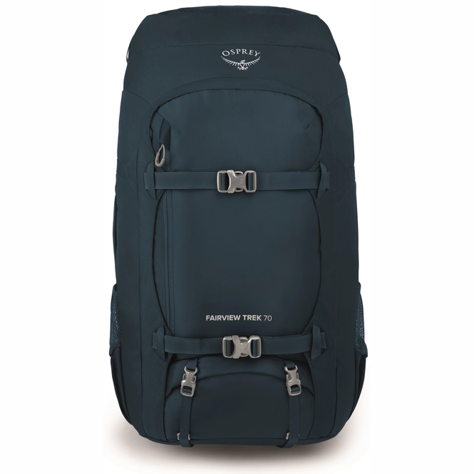 Der Osprey Fairview Trek 70 Women Night Jungle Blue ist ein hochwertiger Rucksack, der speziell für die abenteuerlustige Frau entwickelt wurde. Dieser Rucksack bietet ein geräumiges Hauptfach mit einem Fassungsvermögen von 70 Litern, sodass Sie auf Ihren Reisen alle notwendigen Gegenstände mitnehmen können. Der Rucksack verfügt über eine geräumige Frontplatte und ein unteres Fach mit Reißverschluss und Trennwand. Kompressionsriemen an der Ober- und Vorderseite stabilisieren die Ladung, während kleinere Gegenstände in der oberen Tasche und den Hüftgurttaschen verstaut werden können, die beide über Reißverschlüsse verfügen. Gepolsterte Rohrgriffe und die doppelten internen Kompressionsriemen sorgen für Komfort und Halt. Als Sahnehäubchen besteht dieser Rucksack aus recycelten, bluesign-zertifizierten Stoffen und ist daher sehr nachhaltig. Kurz gesagt, dieser Rucksack Osprey Women Fairview Trek 70 Night Jungle Blue ist perfekt für jede abenteuerlustige Frau.