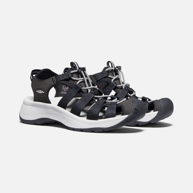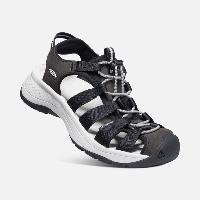 Die Keen Women Astoria Sandale ist eine leichte Sandale, die sich perfekt für den aktiven Gebrauch eignet. Die Sandale hat ein Obermaterial aus recycelten PET-Plastikflaschen mit einem schnell trocknenden Innenschuh, einer Bungee-Schnur und einem Spitzenverschlusssystem. Dies sorgt für hohen Komfort bei guter, fester Passform. Die Sandale lässt sich aufgrund des Slip-On-Designs auch leicht an- und ausziehen und verfügt über einen vorgeformten Bogen für die Unterstützung des Mittelfußes sowie einen Stabilitätsschaft, der auch leichten Halt bietet. Darüber hinaus verfügt die Sandale über eine Gummilaufsohle, die keine Spuren hinterlässt. Ein Aquagrip-Gummi mit Aqua Stop-Zonenslipsen bietet maximalen Grip und Traktion auf nassen Straßen. Die leichte EVA-Zwischensohle und die herausnehmbare EVA-Innensohle sorgen für optimalen Gehkomfort.