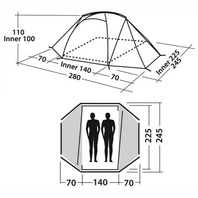 Das Equinox 200 ist ein Kuppelzelt der Marke Easy Camp. Das Zelt ist ideal geeignet für zwei Personen. Das Zelt hat eine geräumige Innenkabine mit Platz auf beiden Seiten für Taschen oder andere Gegenstände. Außerdem besitzt das Zelt auf beiden Seiten eine Öffnung und ist dank der flexiblen Fieberglasstangen einfach aufzubauen. Zudem hat das Zelt mehrere Belüftungslöcher, damit Ihnen im Zelt nicht zu heiß wird. Schließlich haben die vorderen Veranden eine abnehmbare Bodenplane.